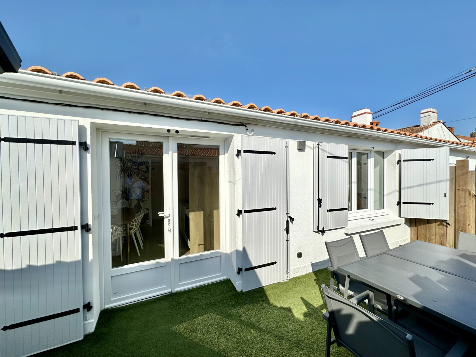 Noirmoutier-en-l'Île (85330)Réfection totale à neuf pour ces deux petites maisons proches de la mer et du bourg de la Guérinière. Une maison vous offrira un salon avec cuisine ouverte équipée, deux chambres, salle d'eau, wc.