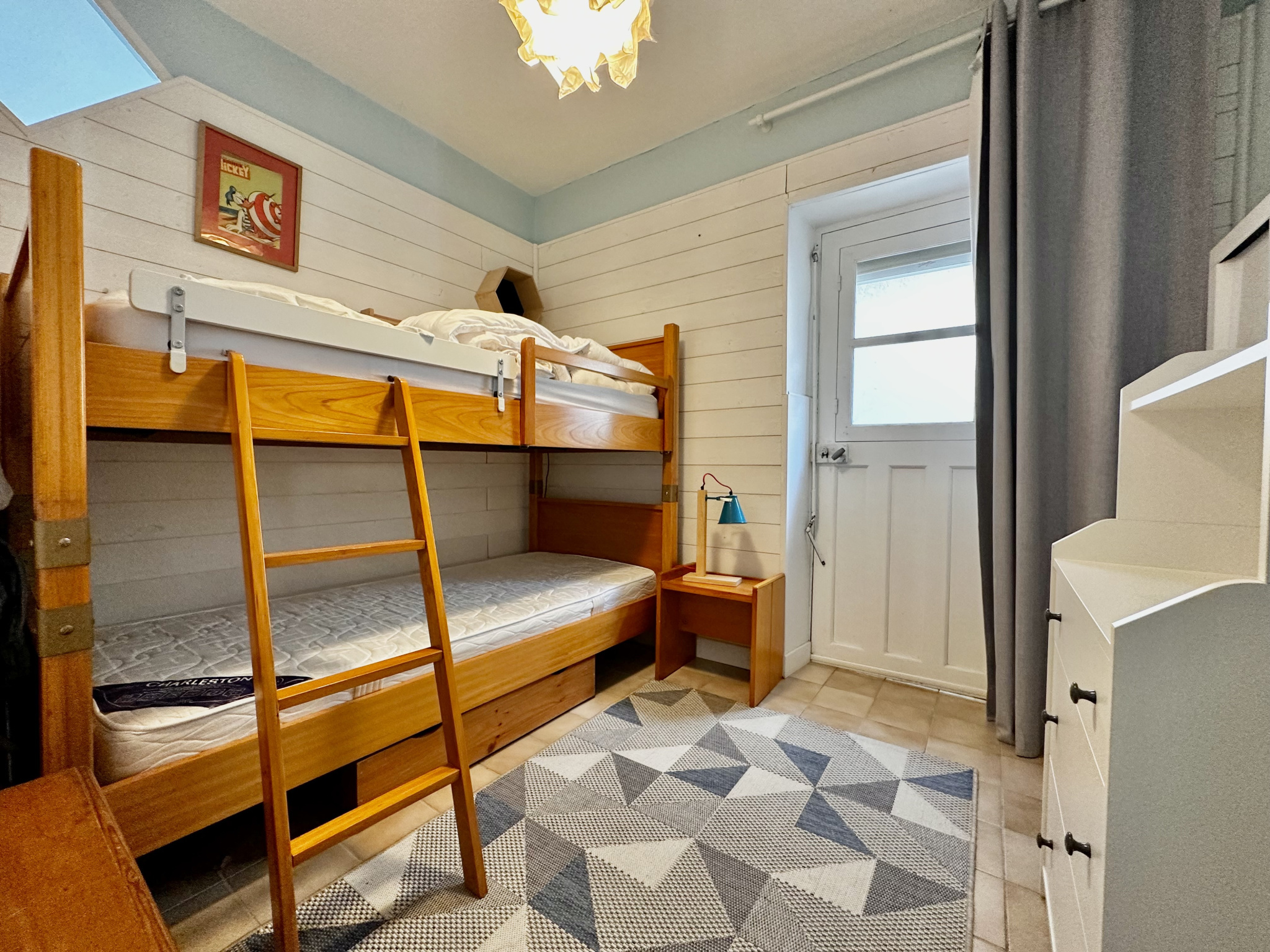 Elle comprend : hall d’entrée, séjour de 25 m2 donnant sur la terrasse, cuisine aménagée et équipée, deux chambres, salle d’eau et wc séparé.